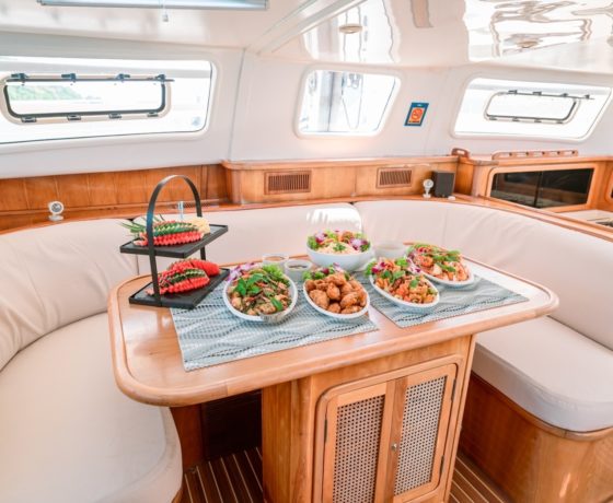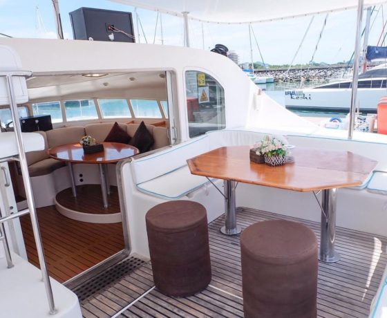 เช่าเรือคาตามารัน 20 คน ล่องเรือยอร์ช ที่มีตาข่ายหน้าเรือ พร้อมหมอนอิงไว้นอนชิวๆ และยังมีห้องนั่งเล่น และ โซฟาด้านหลังเรือไว้รับประทานอาหาร พร้อมดาดฟ้าเรือไว้นั่งเล่นจิบไวน์ชิวๆ บนเรือมี 2 ห้องนอนพร้อมใช้งาน (เรือไม่มีแอร์นะครับ) เพื่อให้ลูกค้าทุกท่านได้ชมบรรยากาศกับครอบครัวและเพื่อนฝูง พร้อมชมความหลากหลายของหมู่เกาะเช่น เกาะคราม เกาะไผ่ เกาะริ้น หาดทรายแก้ว และ จุดชมวิวที่เป็นที่รู้จักระหว่างลอยลำอยู่กลางทะเลให้ลูกค้าได้ดำน้ำตื้นในจุดที่สวยที่สุดพร้อมลิ้มรสความเพลิดเพลินไปกับช่วงเวลาของอาหารและเครื่องดื่มที่มีความหลากหลาย ทั้งนานาชาติและอาหารไทยที่เซริฟบนเรือ อีกทั้งยังกิจกรรม Party บนเรือพร้อมดนตรีแบบมันส์ๆ และ บรรยากาศสุดแสนโรแมนติก และ ที่ไม่น่าพลาดคือเราสามารถกระโดดลงน้ำหรือขึ้นไปเหยียบย่ำบนพื้นทรายละเอียดของเกาะรอบๆให้สุดฟินไปเลย