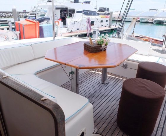 This brand-new yacht is a highly impressive sailing catamaran 42 ft. that had been luxuriously appointed throughout, with three staterooms comprising of one king and two singles and fully equipped galley with refrigerator, freezers, microwave, coffeemaker and built-in ice maker. The saloon can accommodate large numbers of guests as can the chilling trampoline on the forward deck area. The aim of SVENSUN TRAVEL Thailand is to take you to cruising grounds that have not yet become mainstream yacht charter destinations. Anchor in total solitude and be the first to set foot on a long stretch of white powder sand beach. She is the perfect Catamaran for small groups and large groups alike and covers all chartering options from a half day cruise right upto a 7 days, 6 nights cruise.