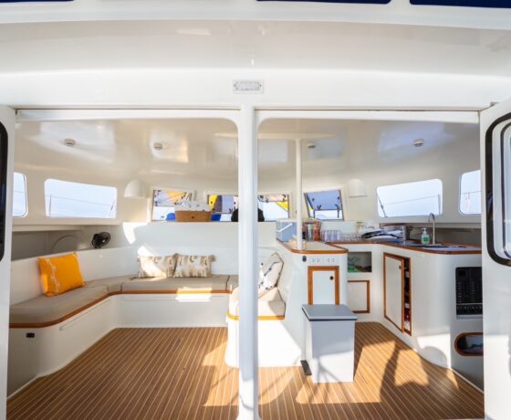 This fully refit sailing catamaran is look like a new owned a deck space and a spacious cockpit allowing passengers to travel in comfort whilst sitting back and relaxing. Inside, there is the lounge area complete with comfortable sofa seating and table. There is no need for air conditioning as the open plan style allows for plenty of cool sea breeze to flow through and 360 degree views. For the overnight journey you will find four cabins. The galley is located on the bridgedeck with a two burner stove plus a toaster oven. At the stern of each hull you will find a spacious head with an electric marine toilet and shower. The aim of SVENSUN TRAVEL is to take you to cruising grounds that have not yet become mainstream yacht charter destinations. Anchor in total solitude and be the first to set foot on a long stretch of white powder sand beach.